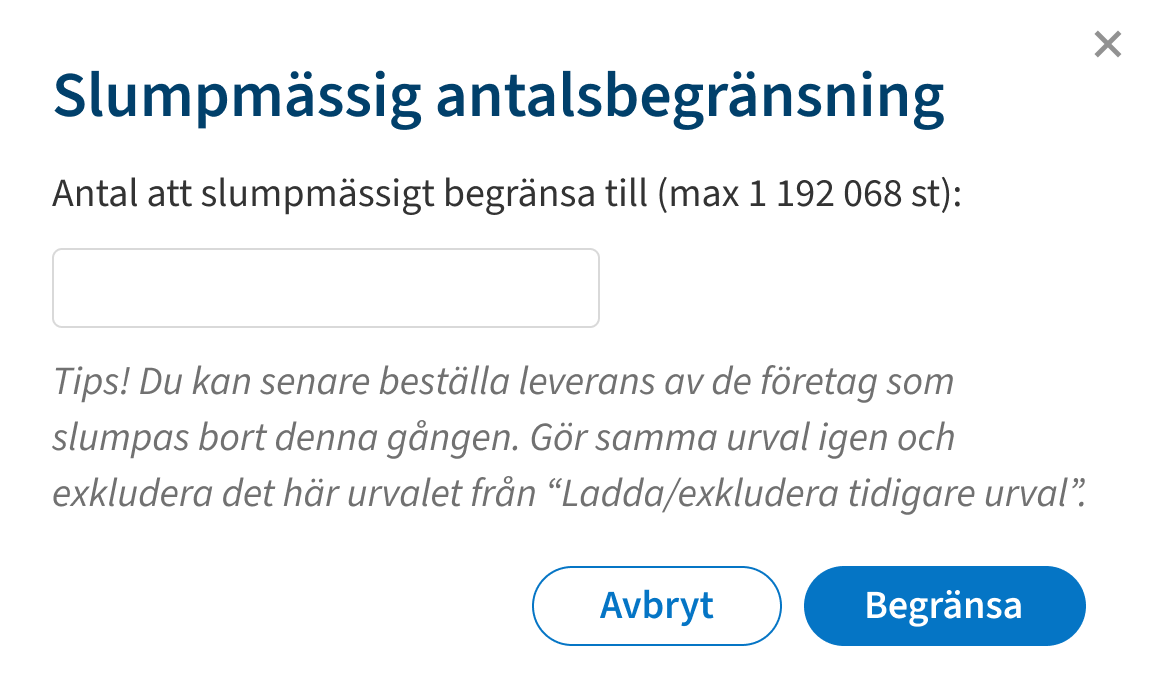 När ditt urval är för stort eller när du vill göra ett testutskick så slumpar systemet fram det antal du vill ha.