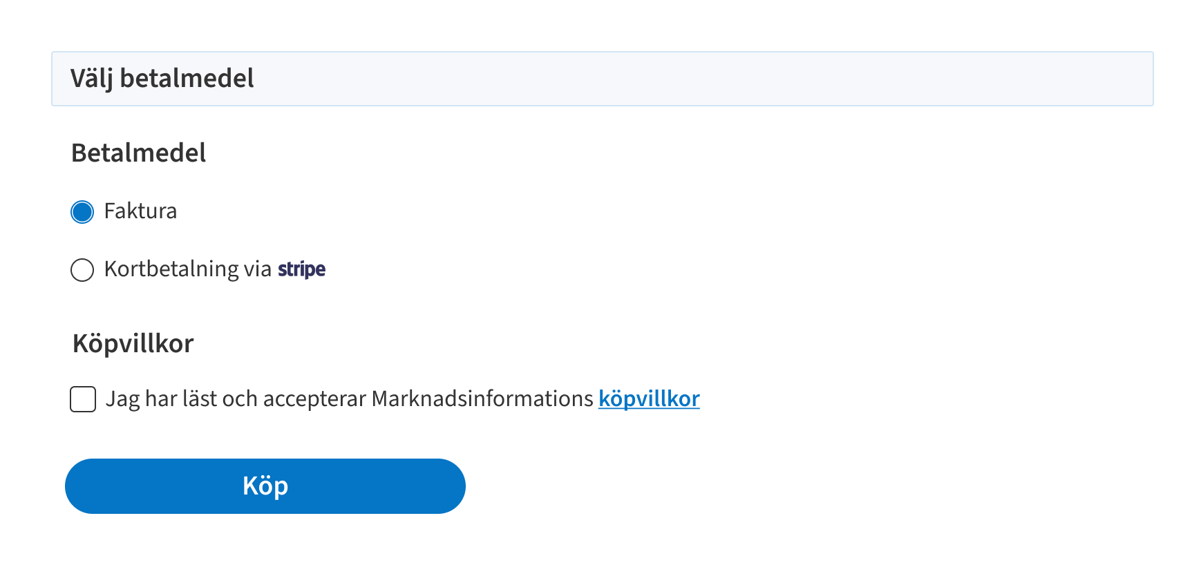 Klicka på Köp – leverans sker inom några sekunder. Är du förstagångsbeställare tas en sedvanlig kreditupplysning.